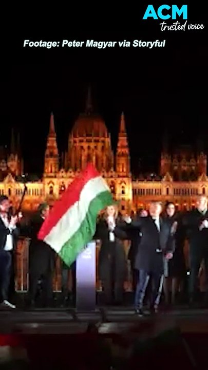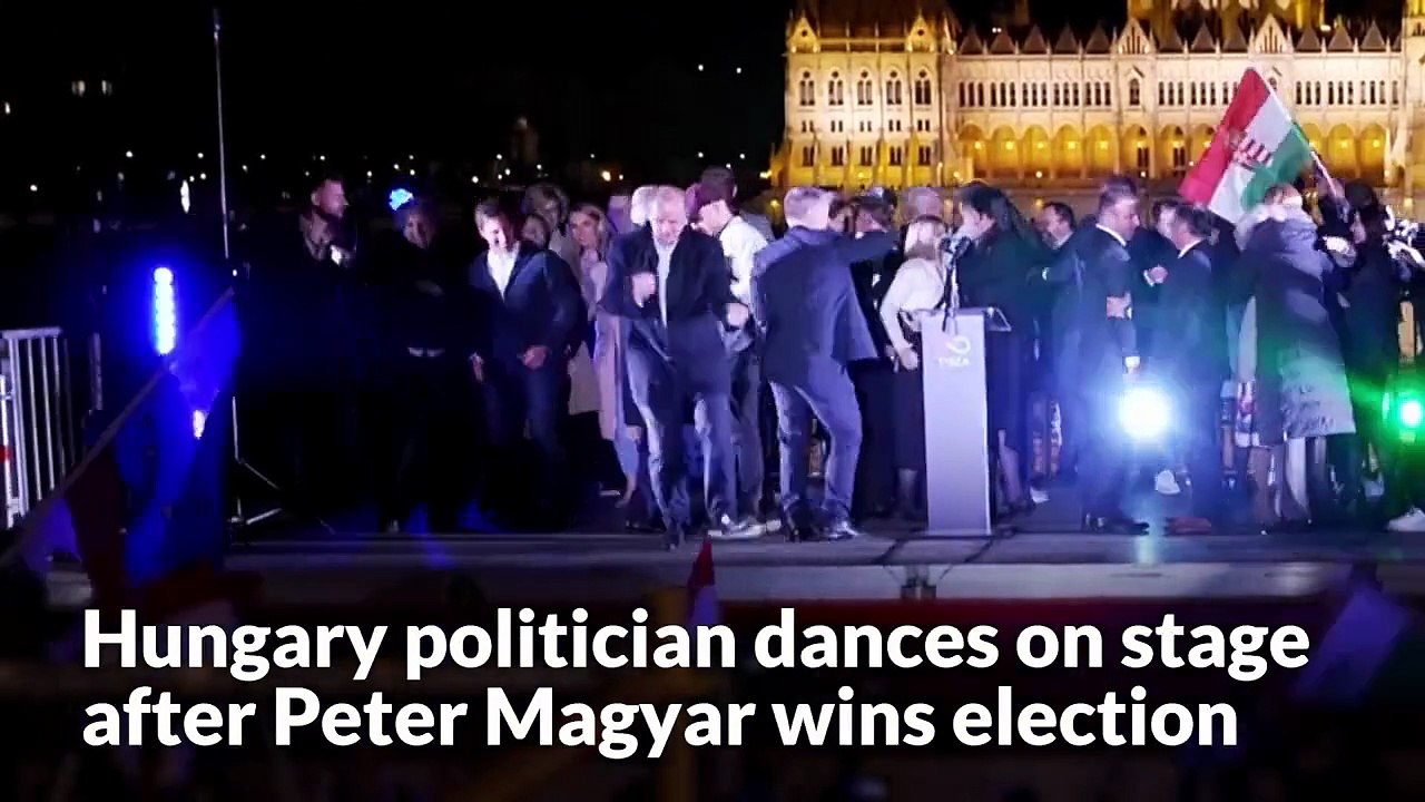 Hungary politician dances on stage after Peter Magyar wins election