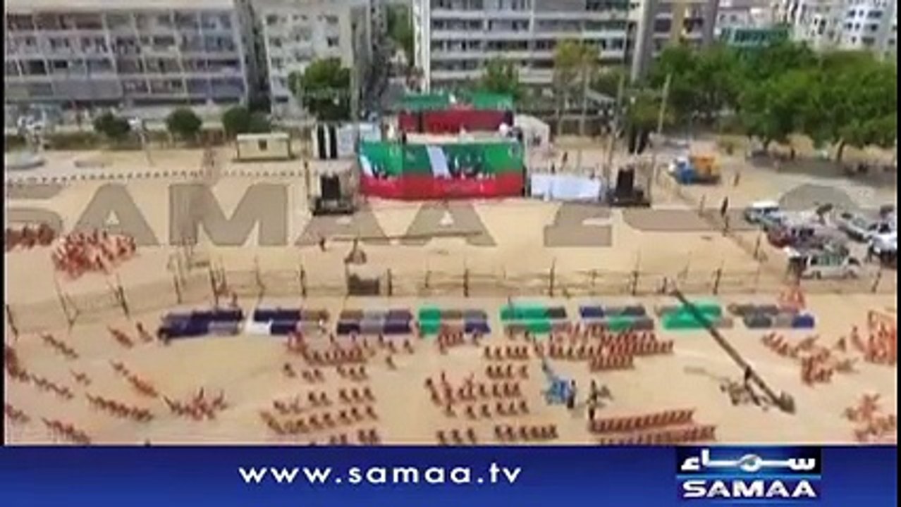 Helicam shots of PTI rally venue in Karachi