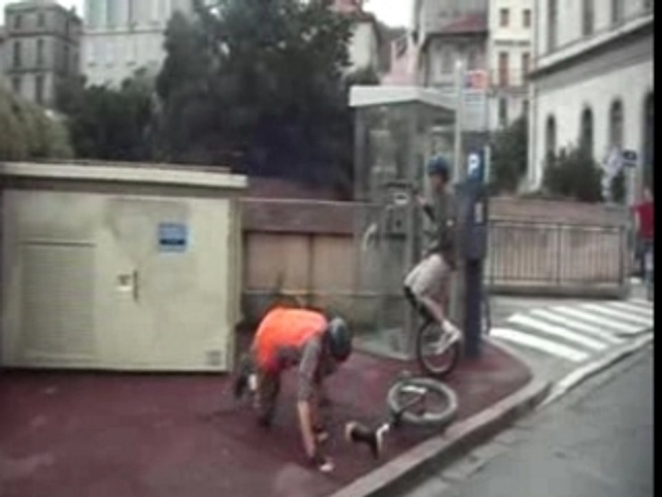 Trick de fou _ il lance et reprend sa roue de vélo en roulant !