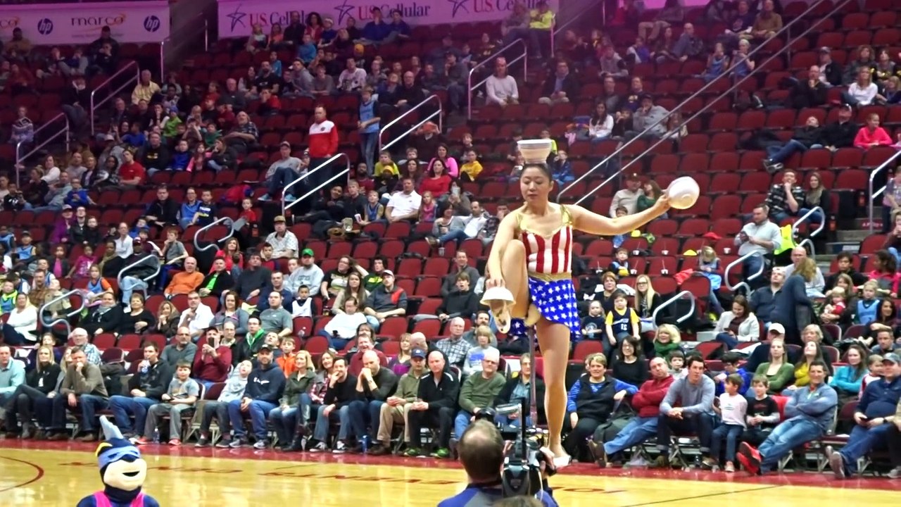 Elle jongle avec des bols sur un monocycle, vélo à une roue