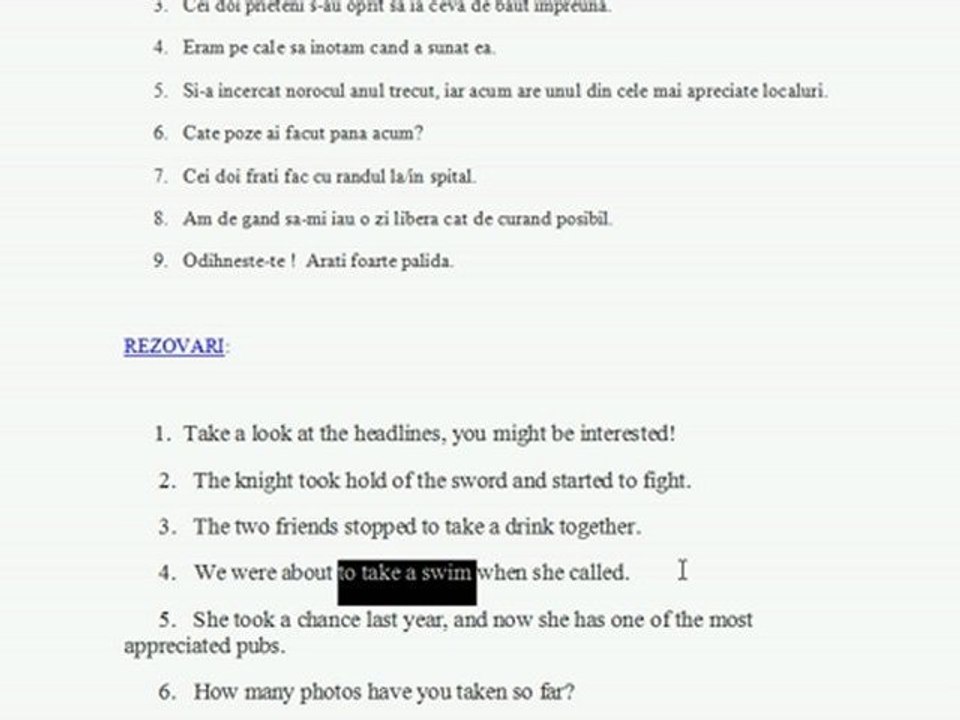Traducerea propozitiilor cu TAKE - cele mai folosite expresii