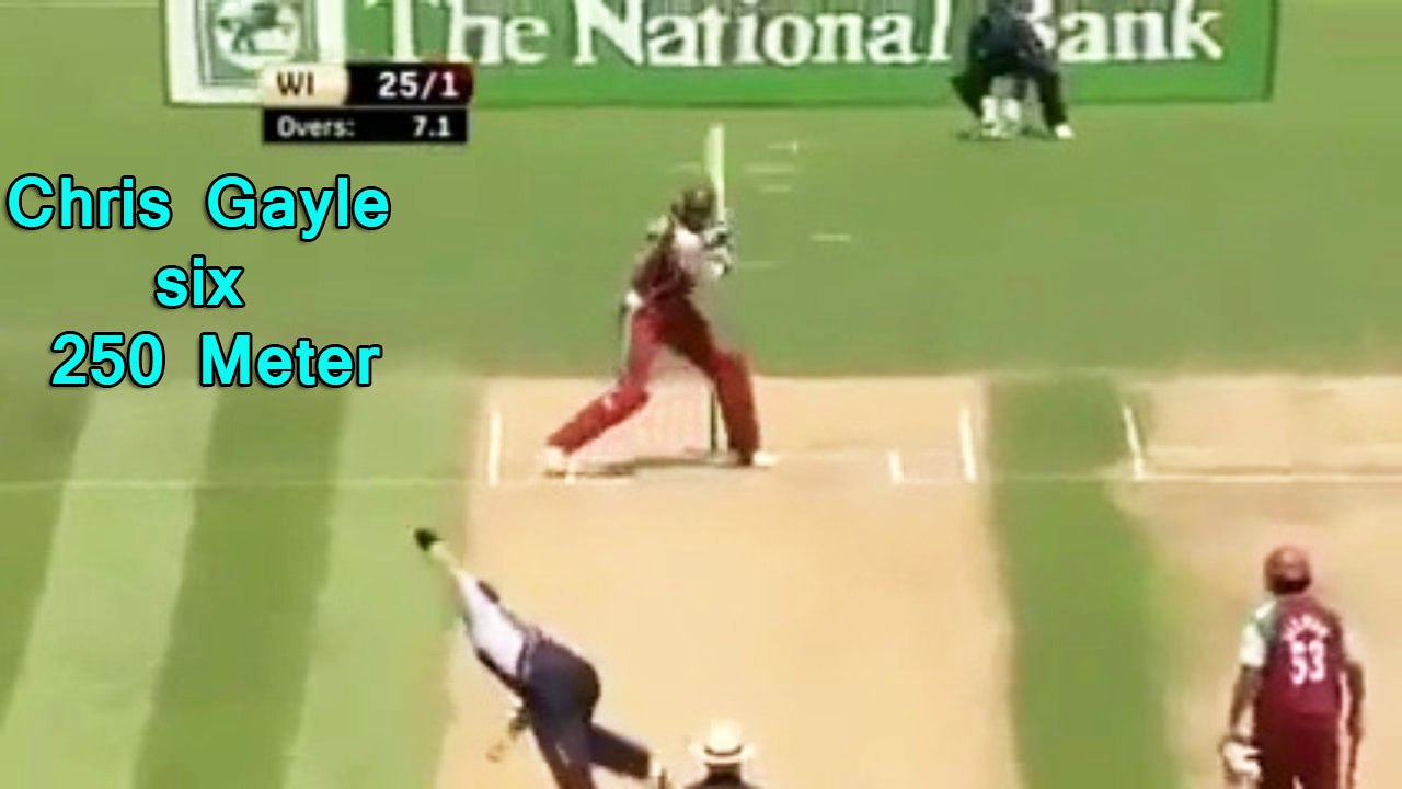 क्रिस गेल सबसे लम्बा छक्का 250 मीटर !!