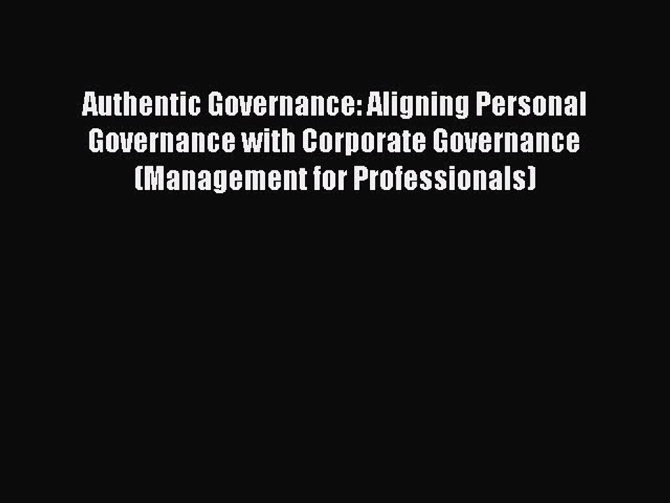 Read Authentic Governance: Aligning Personal Governance with Corporate Governance (Management