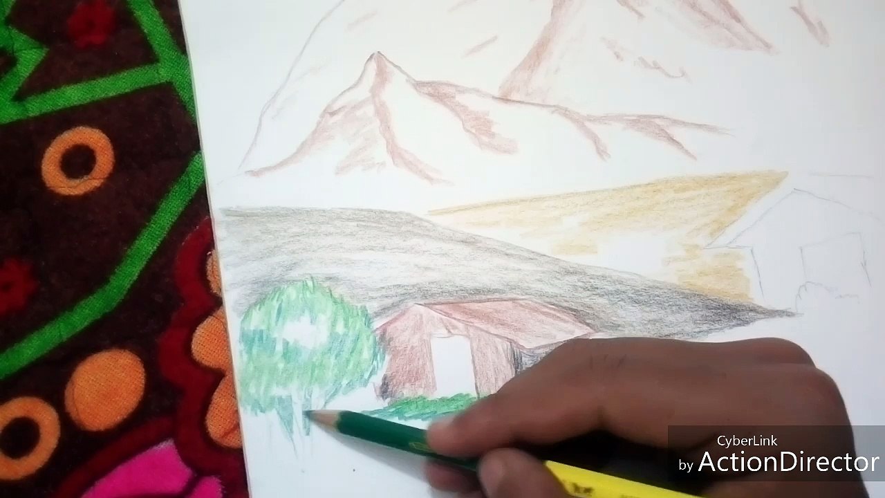 natural beautiful mountain drawing scenery || mountain natural landscape drawing scenery