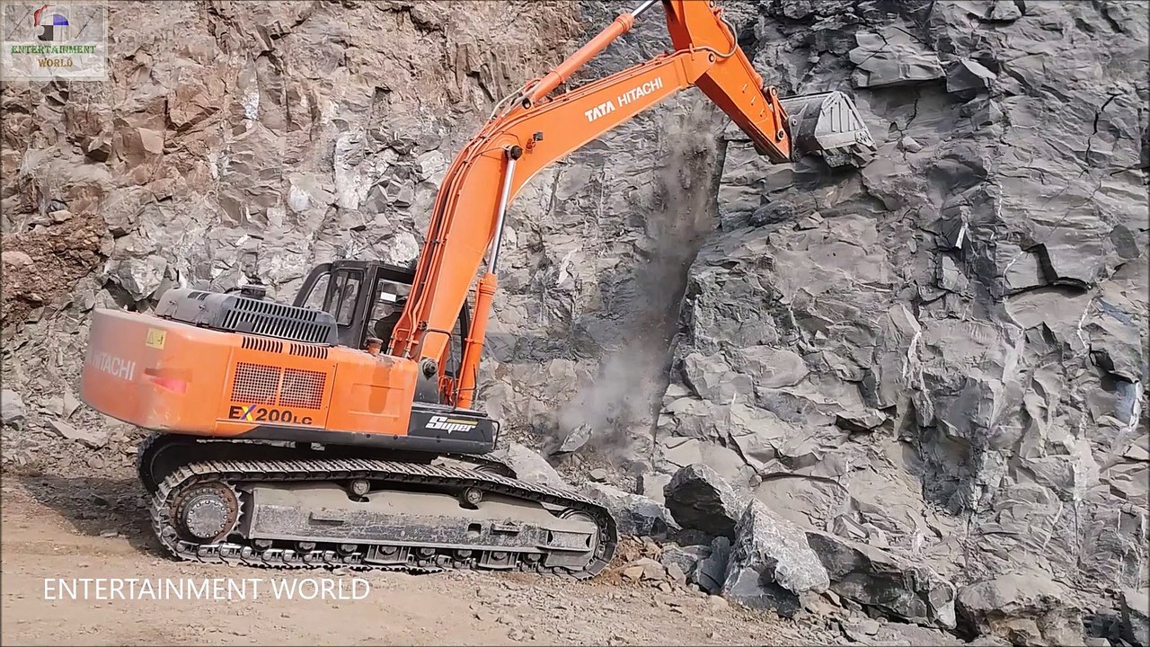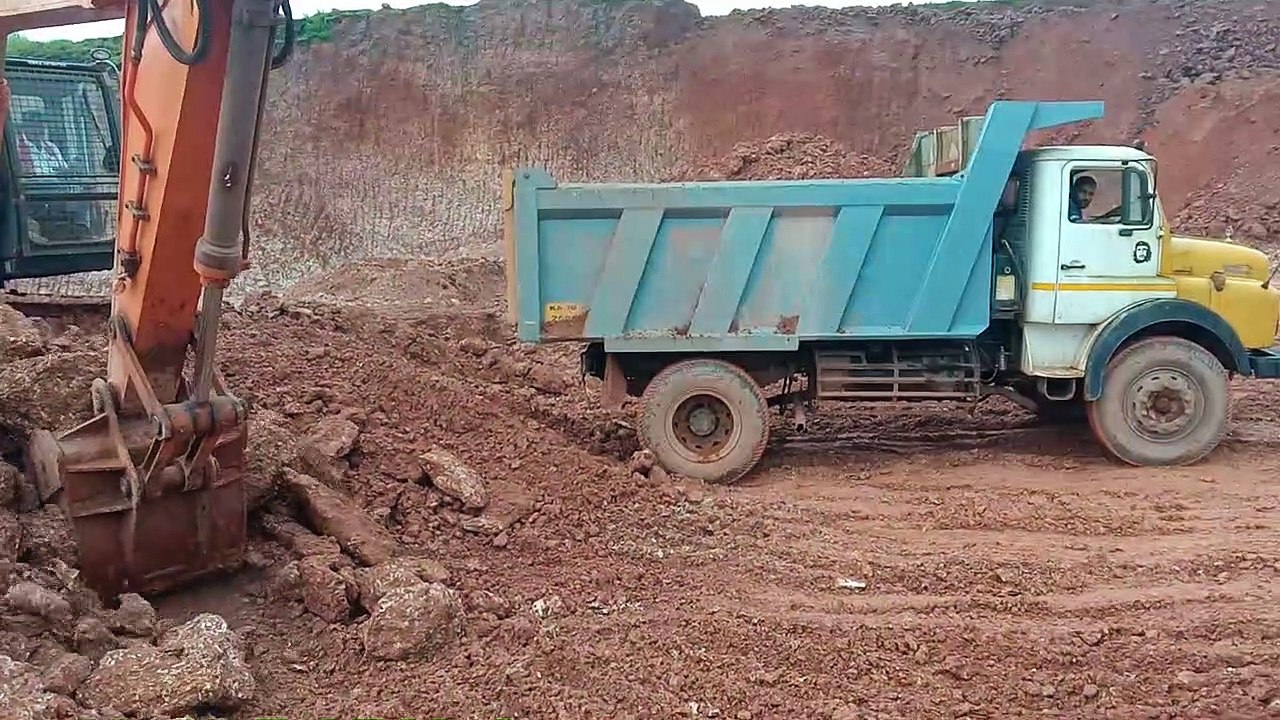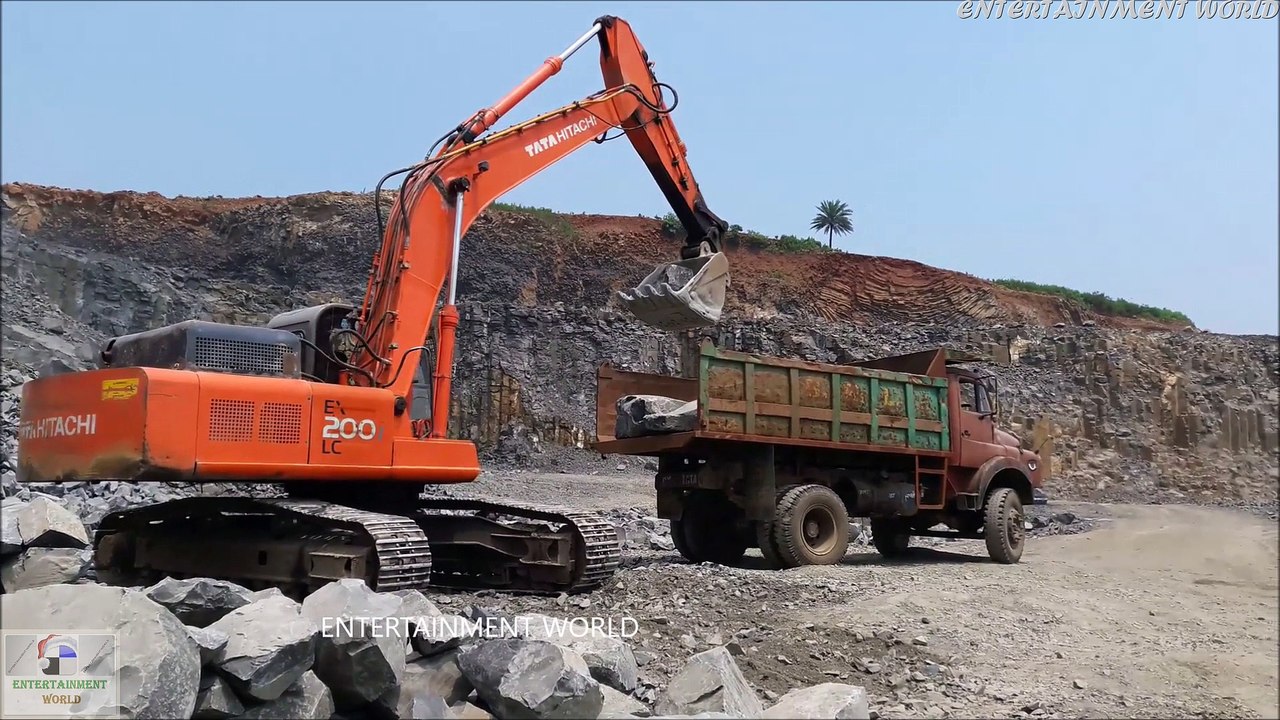 Tata Hitachi Excavator 200LC Loads Stones On Tata Tipper 1612
