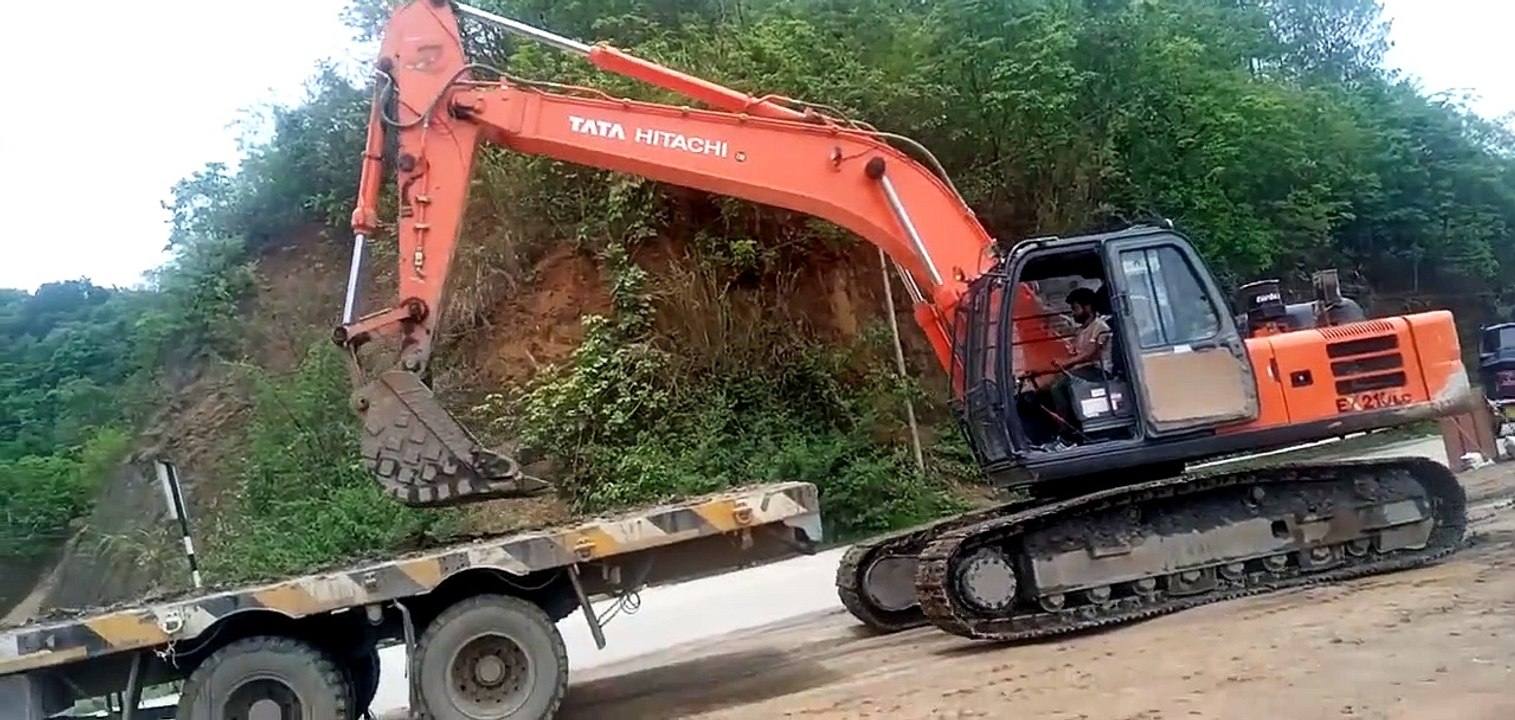Tata Hitachi Ex 210 Excavator machine loading Trailer