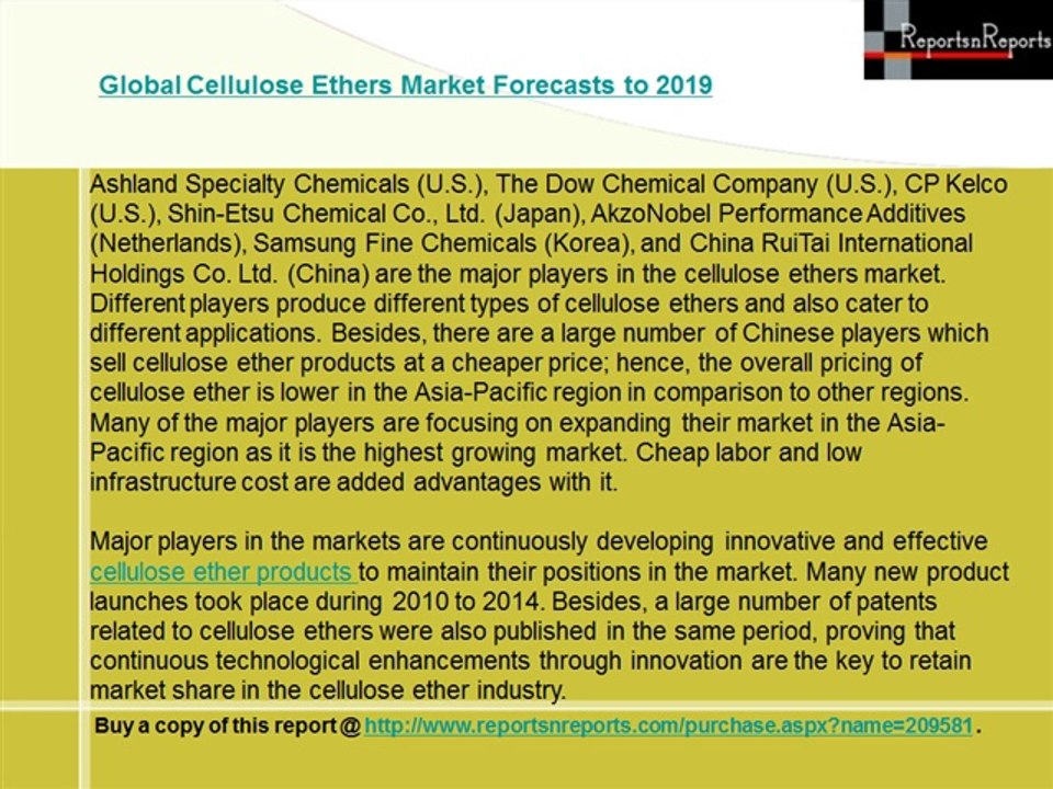 Global Cellulose Ethers Market Forecasts to 2019