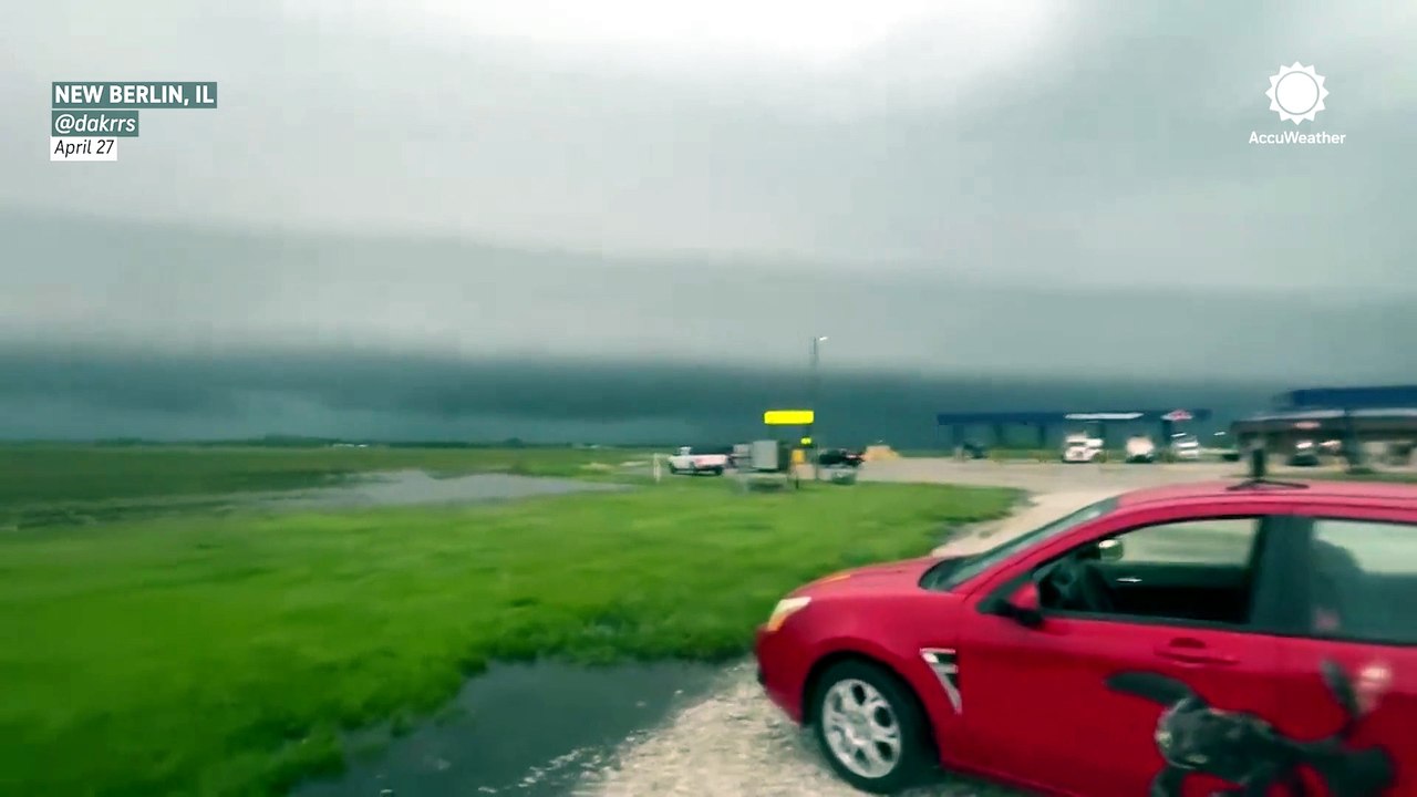 Tornado sirens blare as wall cloud hovers in Illinois sky
