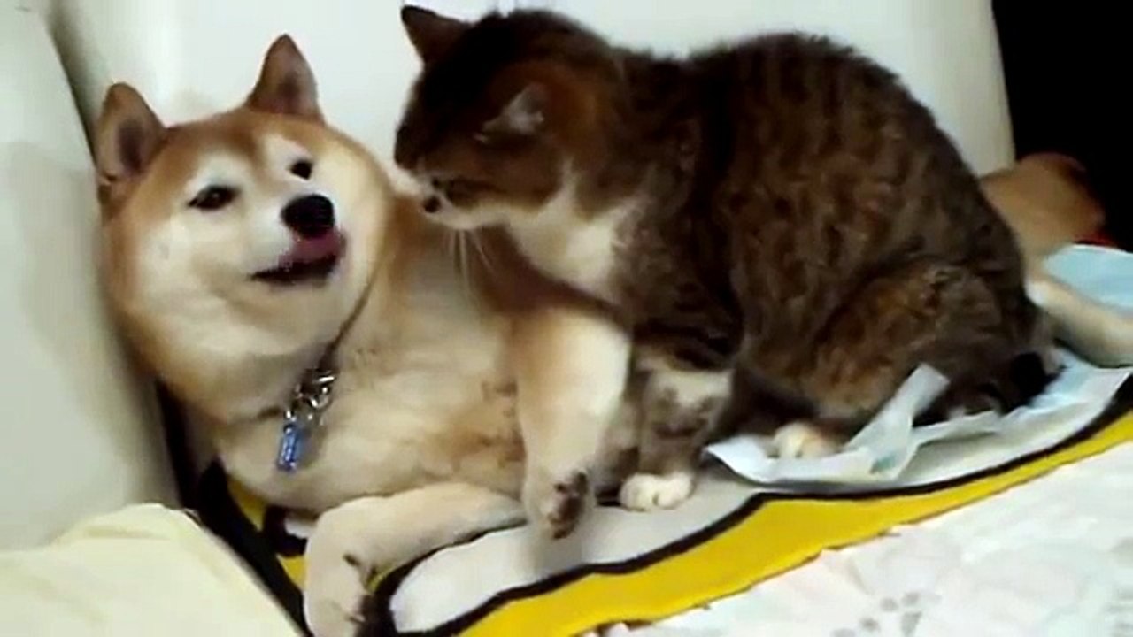 Funny clips smile because of the dog with the cat