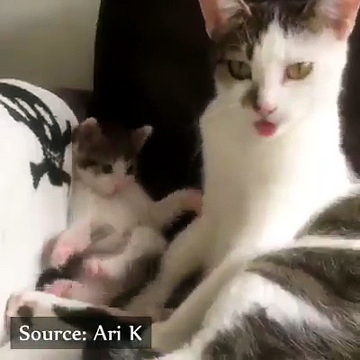 Cute kitties imitate mothers