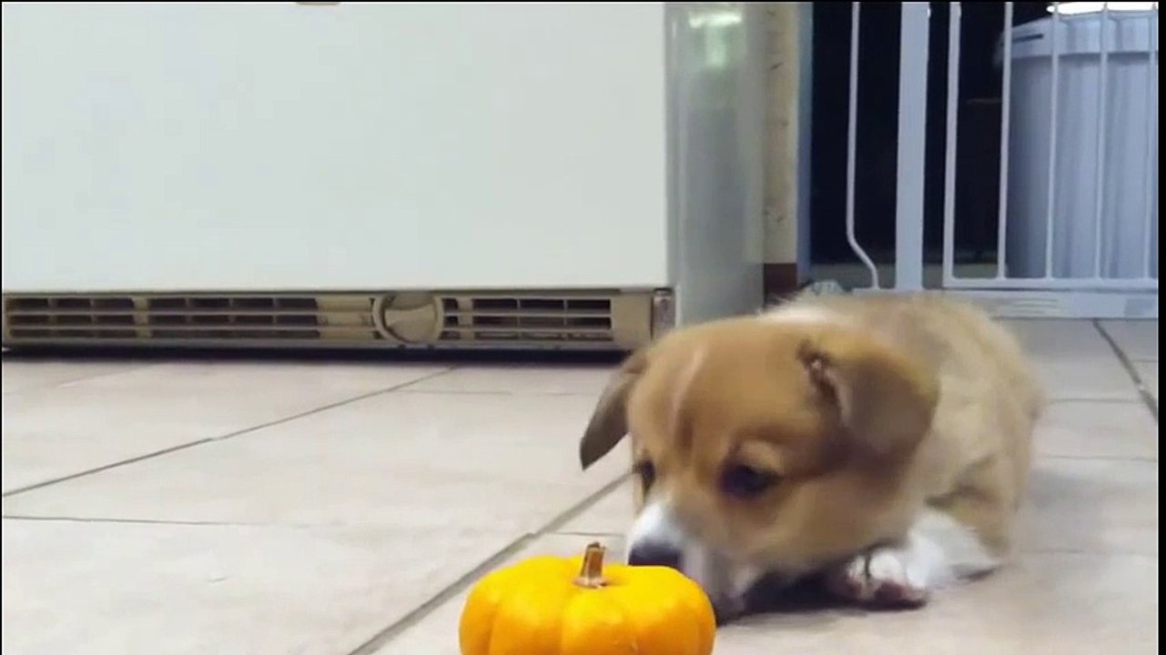 Once dogs try to eat pumpkins