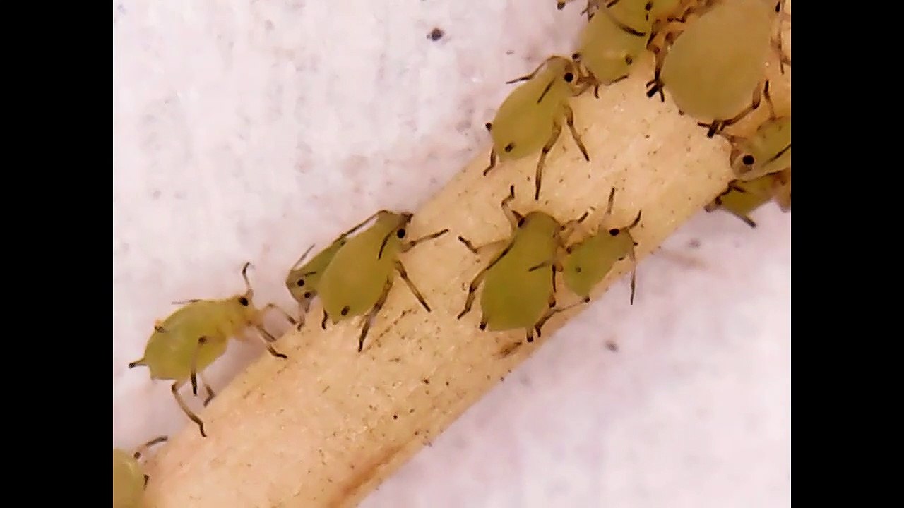 Insectos en el pedĂșnculo de una flor