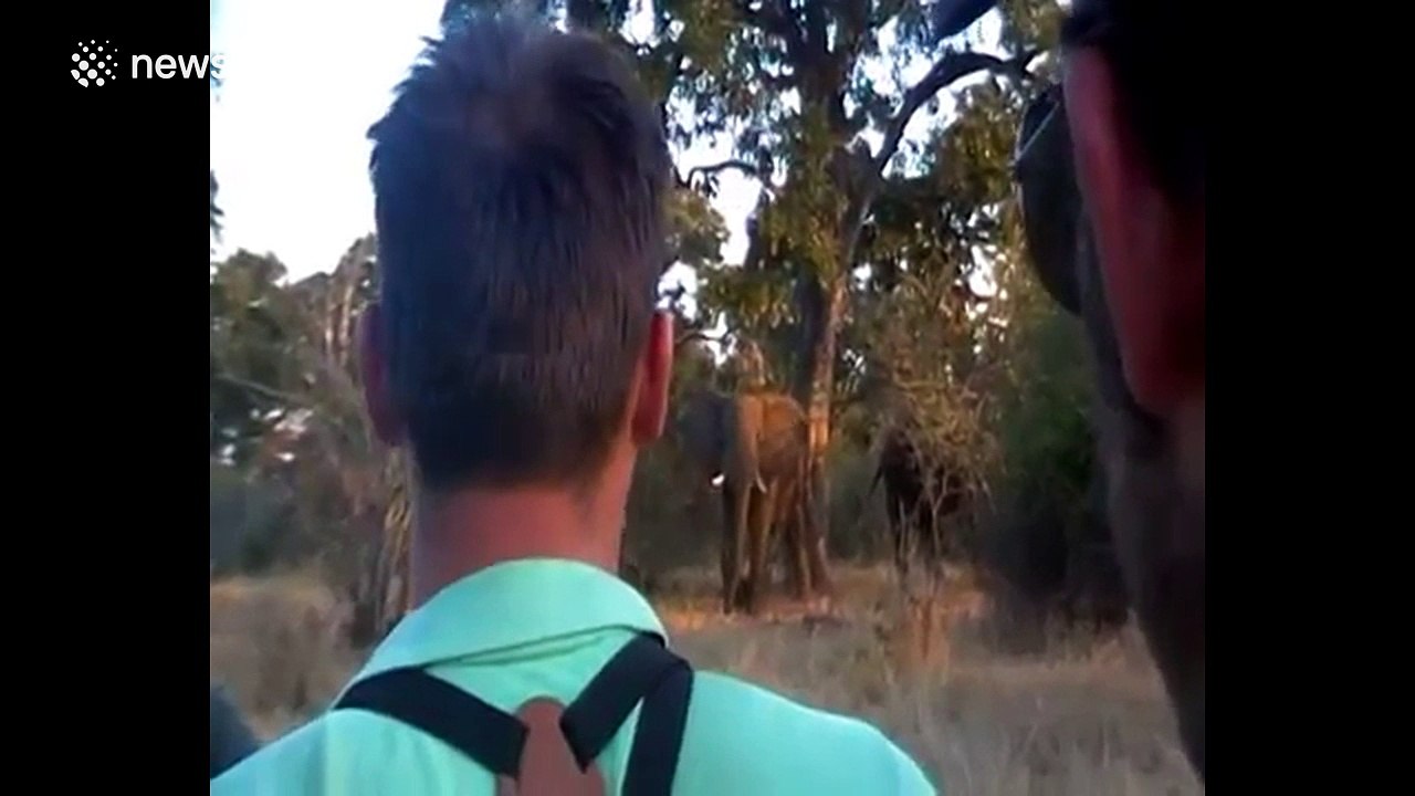 Bull elephants gang up on backpackers