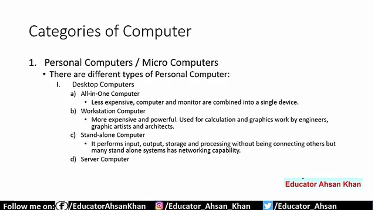 Categories of Computers _ Educator Jobs Preparation PPSC 2021 Lecture 4 Intro to
