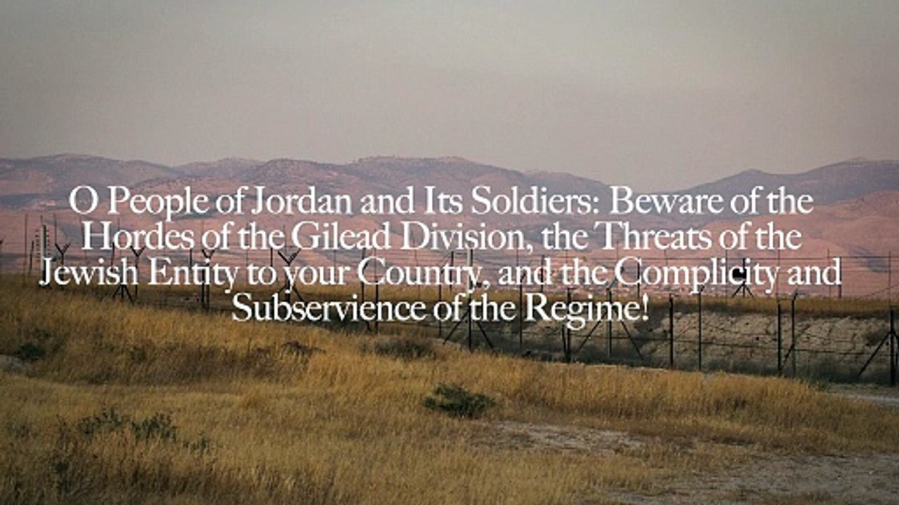 O People of Jordan and Its Soldiers- Beware of the Hordes of the Gilead Division, the Threats of the Jewish Entity to your Country, and the Complicity and Subservience of the Regime!