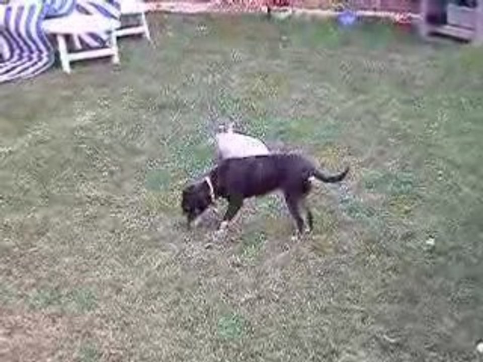 Le chat amusant chat a sauté sur le chien! Le chien était en état de choc! Regardez!
