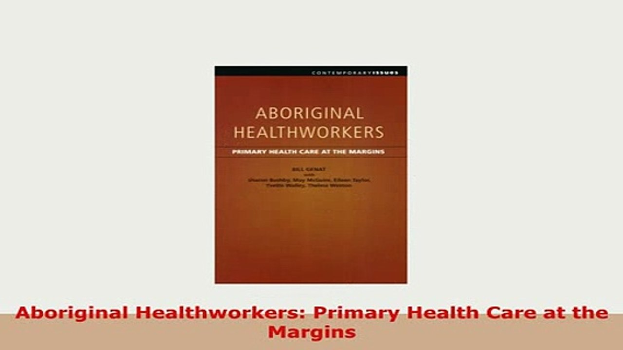 PDF Aboriginal Healthworkers Primary Health Care at the Margins Read Full Ebook