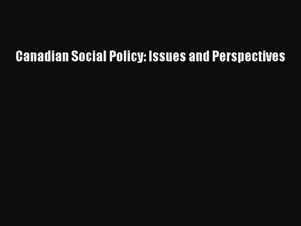 [PDF Download] Canadian Social Policy: Issues and Perspectives [Download] Online