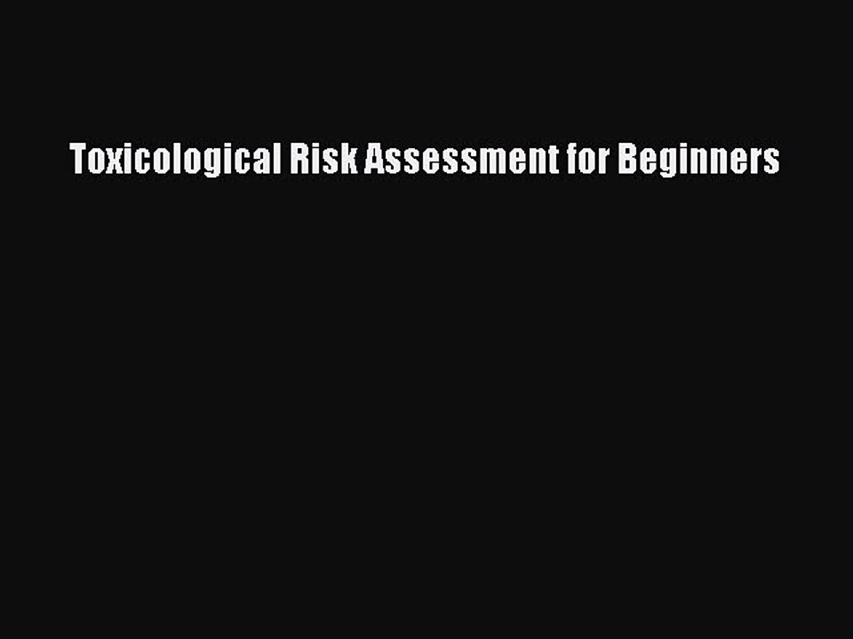 PDF Toxicological Risk Assessment for Beginners [Read] Full Ebook