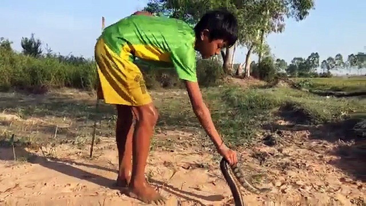 Two Amazing Boys Catching A Big Water Snake Bare Hand While Eating Grilled Fish
