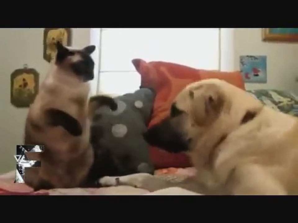 Funny clips smile because of the dog with the cat