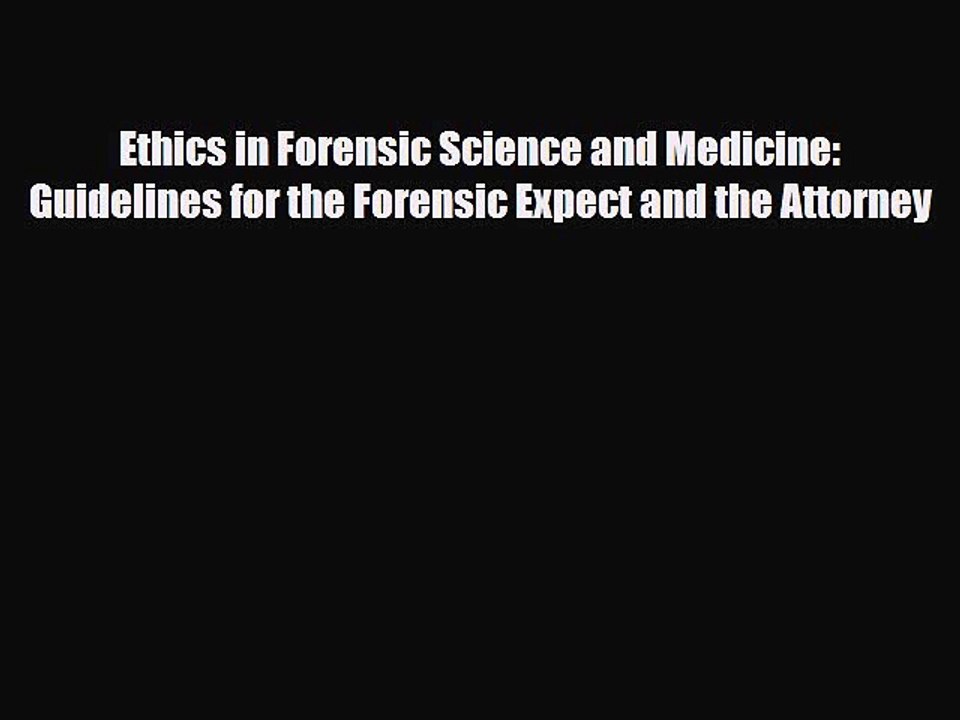 [PDF] Ethics in Forensic Science and Medicine: Guidelines for the Forensic Expect and the Attorney