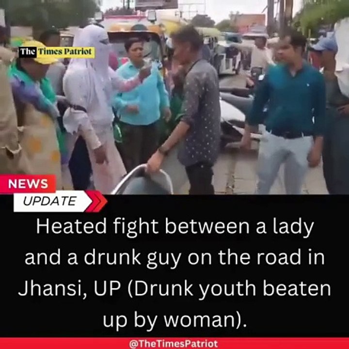 Heated fight between a lady and a drunk guy on the road in Jhansi, UP (Drunk youth beaten up by woman). #Jhansi #RoadRage #UPNews