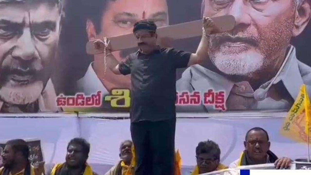 పశ్చిమ గోదావరి: సిలువ వేసినట్లుగా మాజీ ఎమ్మెల్యే నిరసన