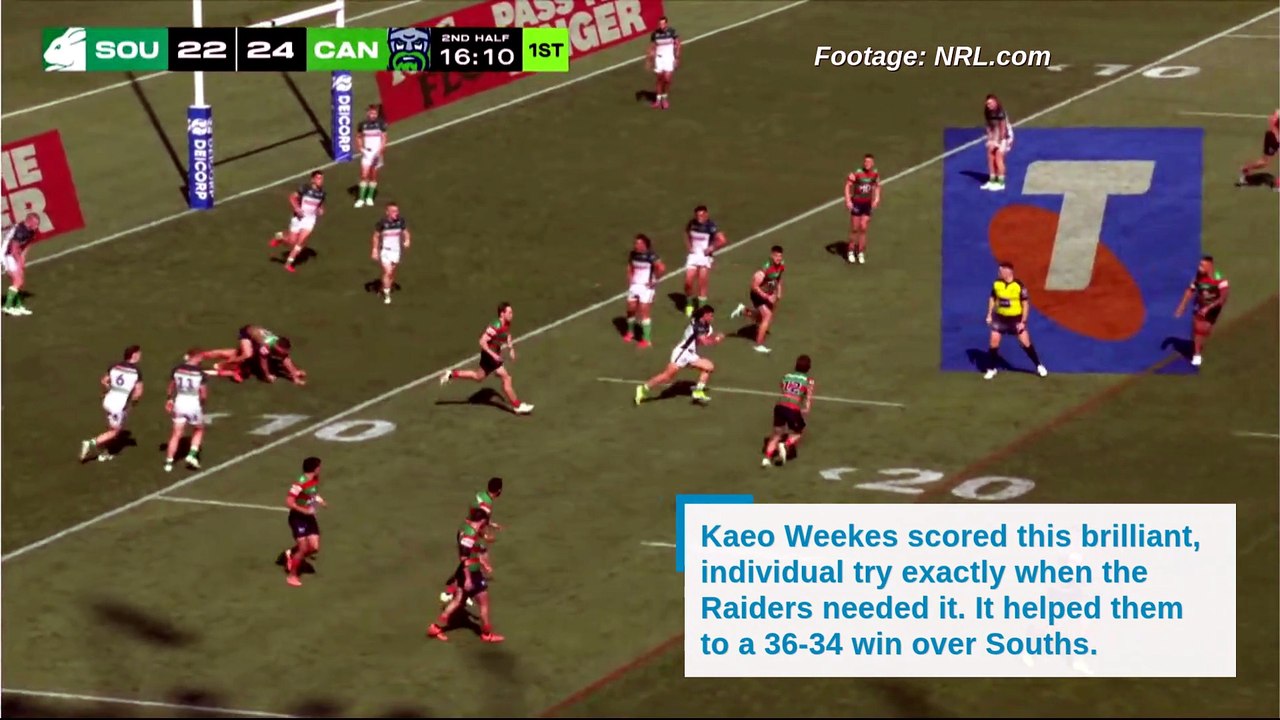 Kaeo Weekes' stunning try. Footage NRL.com