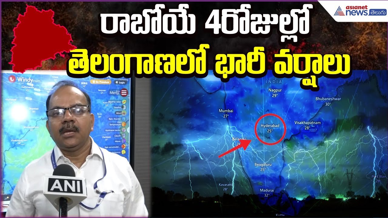 రాబోయే 4రోజుల్లో తెలంగాణలో భారీ వర్షాలు:Telangana Rains | Weather Update | Asianet News Telugu