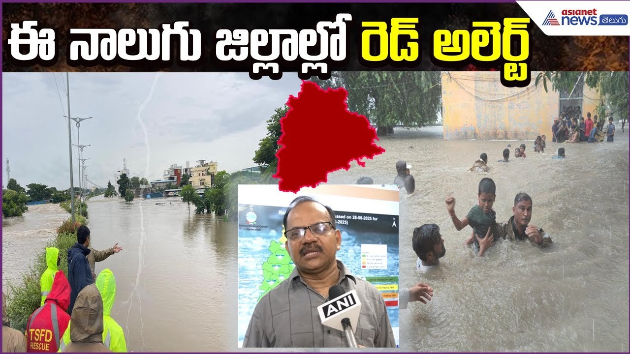 ఈ నాలుగు జిల్లాల్లో రెడ్ అలెర్ట్: Telangana Rains | Floods | Weather Updates | Asianet News Telugu