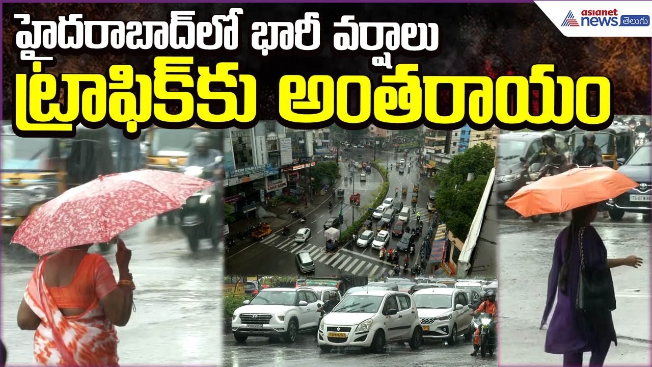 Heavy Rains Hyderabad: హైదరాబాద్లో భారీ వర్షాలు..ట్రాఫిక్కు అంతరాయం| Weather | Asianet News Telugu