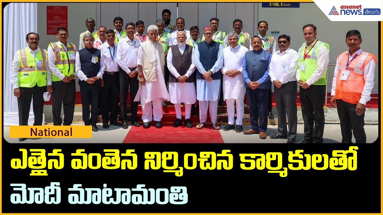 ఎత్తైన వంతెన నిర్మించిన కార్మికులతో మోదీ మాటామంతి | Narendra Modi | Chenab bridge | Asianet Telugu