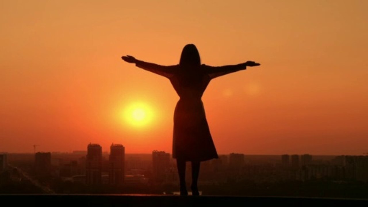 Girl Spreading Her Arms in Front of the Setting Sun